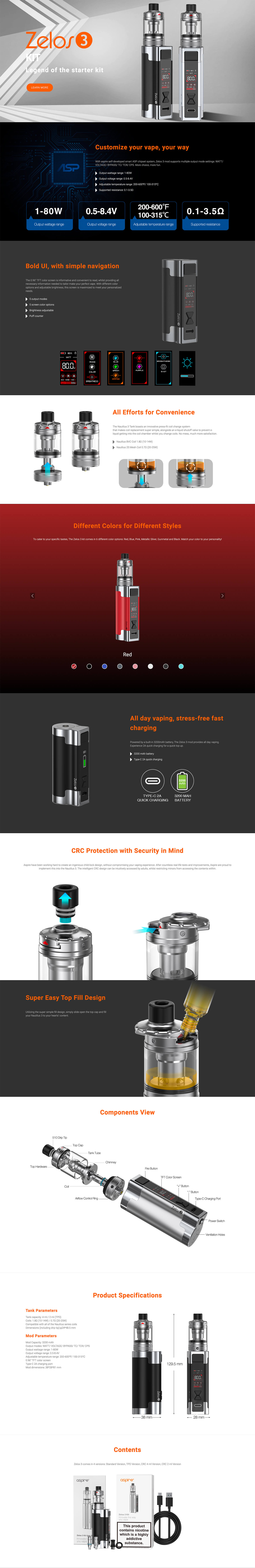 1 x Aspire Zelos 3 80W Mod (3200 mAh)
