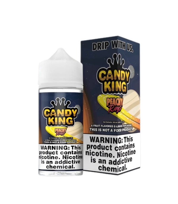 Candy King Peachy Rings, şeftali jelibon halkası aromalarını tatlı ve meyvemsi bir profilde sunan 60 ml’lik freebase e-likittir. 70/30 oranı ile yoğun buhar ve şeftali aromaları sağlar.