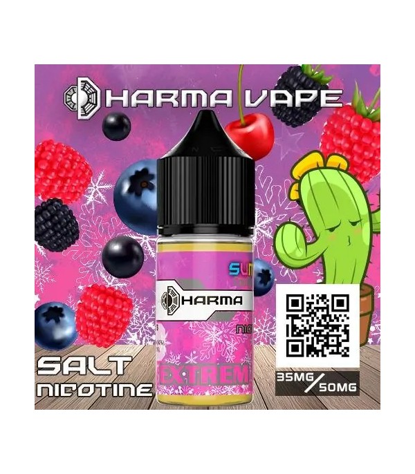 Dharma Extrem Salt Likit, hem lezzet hem de kullanım kolaylığı açısından öne çıkar. 30 ml şişe boyutu, 35 veya 50 mg nikotin seçenekleri ile farklı kullanıcı ihtiyaçlarına hitap eder. Orman meyveleri, muz, çilek, krema ve fındık aromaları ile tat profili zengindir ve kaktüs/buz aromasıyla ferah bir deneyim sunar.