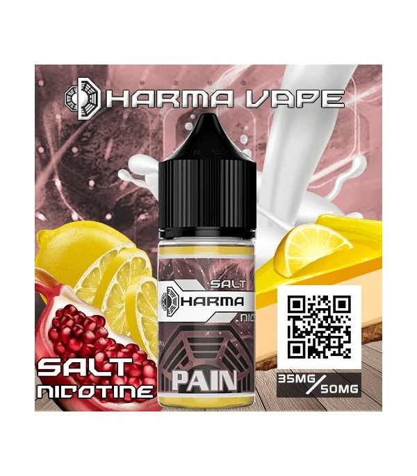 Dharma Pain Salt Likit, limon, nar, cheesecake ve süt aromalarının dengeli birleşimiyle tatlı ve ferahlatıcı bir vaping deneyimi sunar. 30 ml şişe, 35/50 mg nikotin seçenekleri ve premium formülüyle pod mod cihazlarla mükemmel uyumludur.