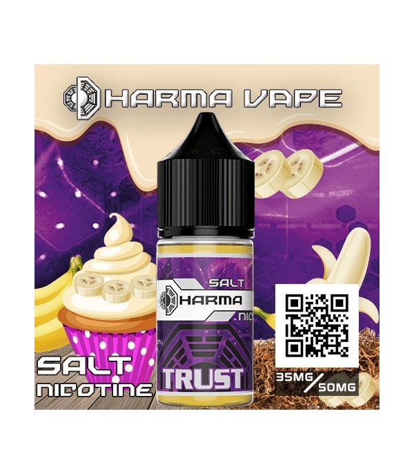 Dharma Trust Salt Likit, kek, muz kreması ve tütün aromalarının birleşimi ile tütün tadını kaybetmeden dengeli ve tatmin edici bir vaping deneyimi sunar. 30 ml şişe ve 35 / 50 mg nikotin seçenekleri ile pod mod cihazlarla uyumludur. Tatlı, kremalı ve tütün aromalarının dengeli kombinasyonu ile yoğun ve keyifli bir içim sağlar.