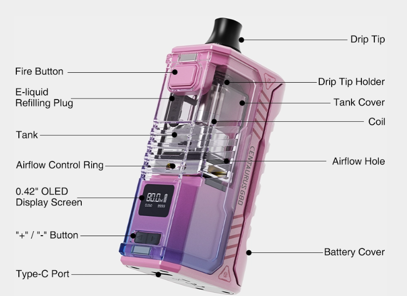 Lost Vape Centaurus G80 AIO, yüksek performansı ve taşıma kolaylığını bir arada sunan kompakt bir AIO (All-In-One) vape kitidir. Tek adet 18650 batarya ile çalışan cihaz, 5-80W arası çıkış gücüyle hem yoğun buhar isteyen kullanıcılara hem sub-ohm deneyimine meraklı kullanıcılara hitap eder. Side-fill pod sistemi, sabit hava akışı tasarımı ve ub ultra coil ile temizlik ve değişim kolaylığı sağlar. 0.42" OLED ekran, watt, direnç, voltaj ve batarya durumu gibi önemli bilgileri net şekilde gösterir.