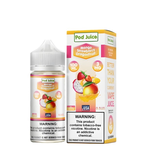 Pod Juice Mango Strawberry Dragonfruit, mango, çilek ve ejder meyvesinin tropikal aromalarını birleştirerek tatlı ve ferah bir lezzet sunan meyvemsi bir elektronik sigara likitidir. 70VG / 30PG oranı sayesinde pürüzsüz buhar ve yoğun aroma deneyimi sağlar. 100 mL şişede; 0 mg, 3 mg ve 6 mg nikotin seçenekleriyle üretilmiştir.