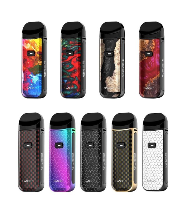 Smok NOVO 4 Pod Mod çeşitleri, renkli ve desenli gövde seçenekleri.