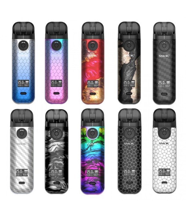 Smok NOVO 4 Pod Mod çeşitleri, renkli ve desenli gövde seçenekleri.