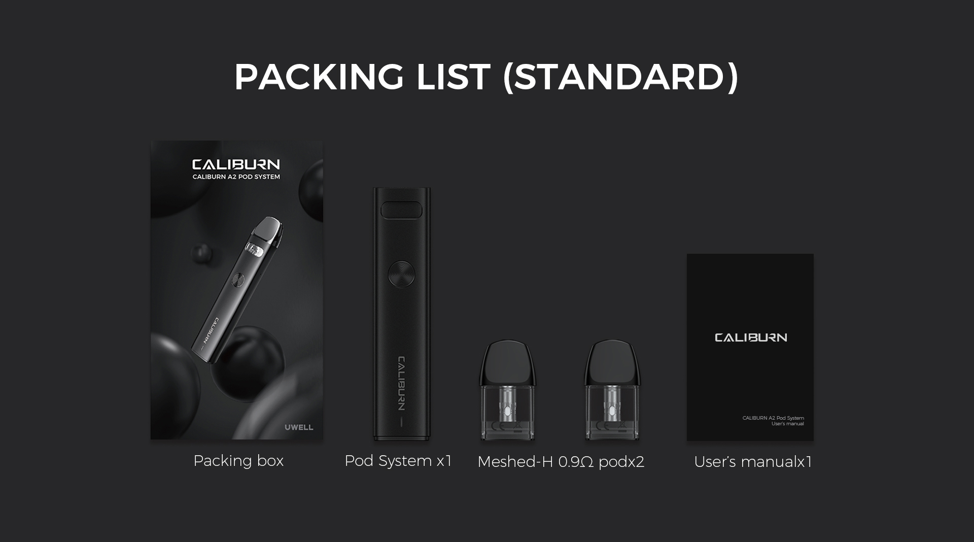 • 2 adet 0,9 Ohm Caliburn A2 kartuş