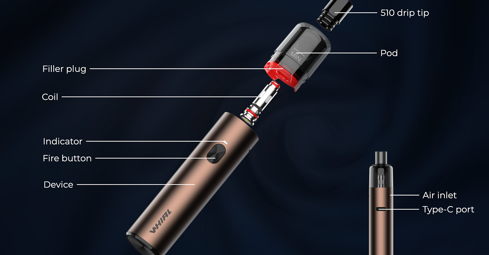 Uwell WHIRL F Pod Mod, günlük kullanım için tasarlanmış ve taşınabilirliği ön planda olan şık bir elektronik sigara cihazıdır.