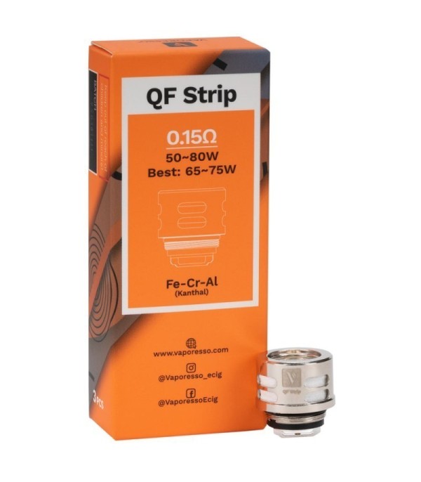 • 0.15 Ohm QF Strip Coil: 50-80W arasında kullanılmak üzere tasarlanmıştır. Hızlı ısınma ve yoğun buhar üretimi ile güçlü bir kullanım deneyimi sağlar.