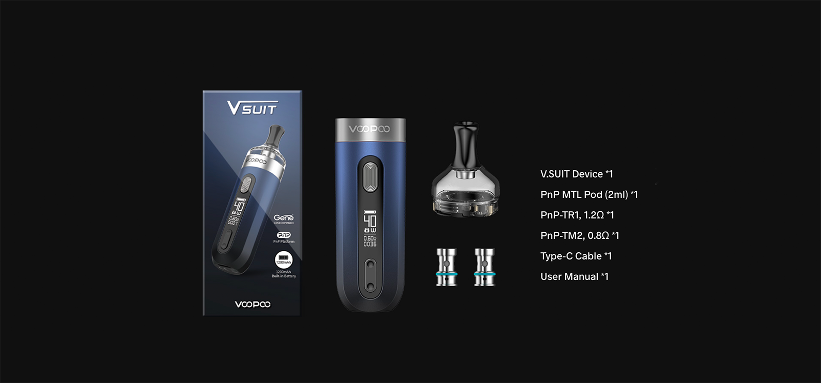 Cihaz, 0.8 Ohm PnP-TM2 ve 1.2 Ohm PnP-TR1 coilleri ile birlikte gelir ve bu coiller, saf MTL içim deneyimi sunmak üzere özel olarak tasarlanmıştır. Alttan doldurulabilen pod kartuşu, güçlü manyetik bağlantı sistemi ile güvenli ve pratik bir kullanım sağlar. Ayrıca, Voopoo V.Suit, 7 farklı güvenlik koruma sistemi ile donatılmış olup, kısa devre koruması, düşük voltaj koruması gibi önlemlerle güvenli bir kullanım sağlar.